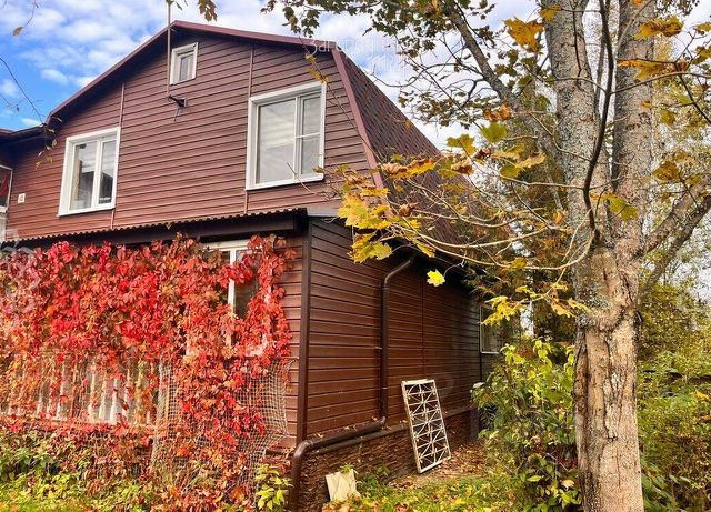 БОЛЬШОЙ ДОМ (1998-2000 года постройки) из бруса, обшит сайдингом. На 1-м этаже расположена кухня, санузел с ванной (установлен электрический бойлер), спальня и гостиная с камином, в прихожей печь для отапливания дровами. 2-й этаж: 3 комнаты, санузел с душевой кабиной, балкон.