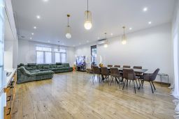 Вас не оставят равнодушными уникальная лестница в холле, огромная гостиная-столовая со вторым светом и камином, итальянской кухней от Poliform, полностью укомплектованной швейцарской премиальной бытовой техникой V-ZUG (варочная поверхность, духовой шкаф с пароваркой, посудомоечная машина, вакууматор, кофемашина, мощная вытяжка, измельчитель, два холодильника фирмы Fhiaba и морозильник Gaggenau). Из гостиной предусмотрен выход на огромную террасу с панорамным видом. По вкусу новому собственнику придется домашний кинотеатр с профессиональной техникой (Focal, Epson) и гараж на три автомобиля.