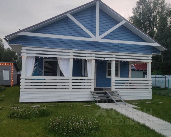 БОЛЬШОЙ ДОМ (1998-2000 года постройки) из бруса, обшит сайдингом. На 1-м этаже расположена кухня, санузел с ванной (установлен электрический бойлер), спальня и гостиная с камином, в прихожей печь для отапливания дровами. 2-й этаж: 3 комнаты, санузел с душевой кабиной, балкон.