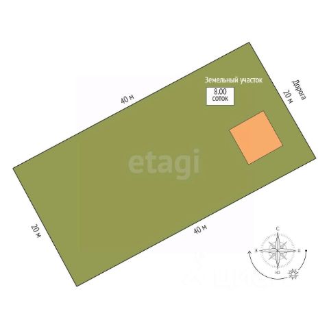 Участок 10 соток правильной прямоугольной формы.