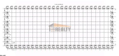 Габаритные размеры здания: (Д х Ш х В) 98 м х 36 м х 6-9 м.