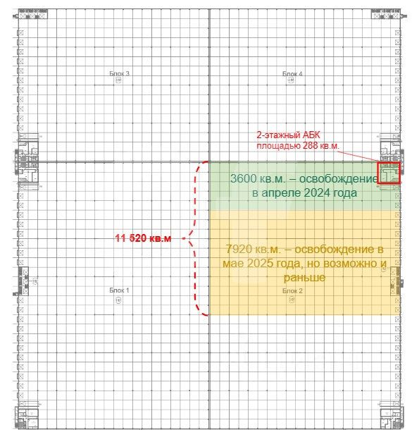 Аренда всей доступной площади 57 600 кв. м, офисы - 6 блоков по 288 кв. м