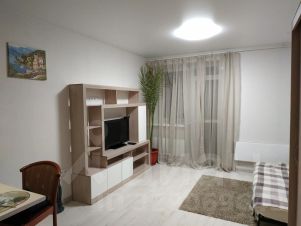 В квартире выполнен дизайнерский ремонт, который гармонично подчеркивает стиль и функциональность пространства. В комнате и на кухне есть вся необходимая мебель, поэтому можно сразу заехать и жить. На кухне установлена современная техника: холодильник, телевизор и стиральная машина. Санузел совмещенный, оборудован душевой кабиной.