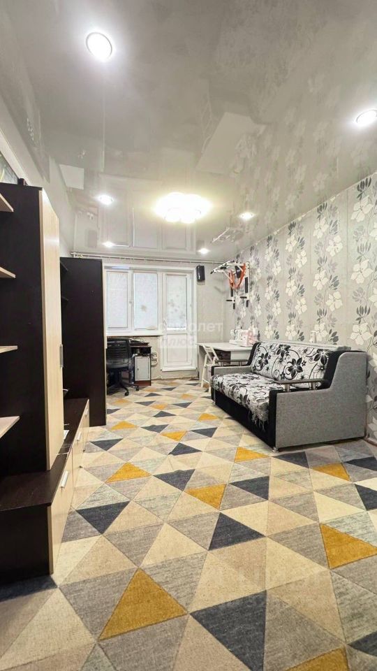 Комната с кладовой для гардеробной. Закрытый балкон с видом на улицу.