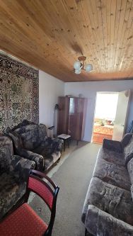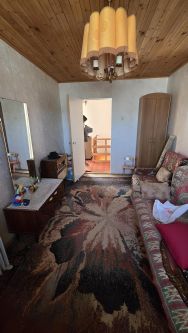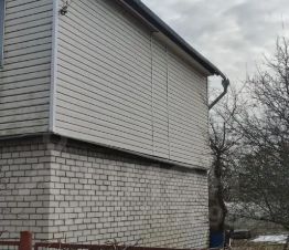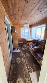 Первый этаж дома построен из бревна и обложен кирпичем, в котором расположены две комнаты и кухня. Окна ПВХ. Входная дверь -металлическая, Крыльцо с навесом.