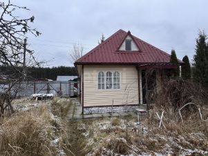 На участке расположен двухэтажный дом 60 кв.м из бруса, на ленточном фундаменте, снаружи обшит сайдингом. Внутри терраса обшита вагонкой, а в основной части дома требуется капитальный ремонт.