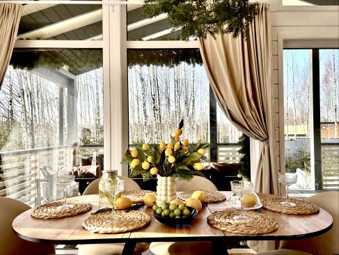 Дом с баней и сибирским чаном — идеально для праздников и романтики 13 гостей / 1,5 часа к западу от Москвы / 35 мин от г. Клина / 65 мин от г. Истра При бронировании взимается 50% предоплата (15% на Циан и 35% нам), невозвратная за 10 дней до даты Подходит для: — дней рождения и семейных праздников — камерных мероприятий и ретритов — романтических выходных и годовщин — отдыха компанией за городом Для расчёта стоимости указывайте фактическое количество гостей в заявке. О доме Частная усадьба в стиле барнхаус — современный дом с баней и сибирским чаном, продуманный для отдыха и уютных вечеров. Баня Панорамные окна / отдельное строение / можно лить воду на камни и стены Полностью приватная Включено: чай, простыни, аромамасла Не включена в цену Чан под открытым небом Включено: аромамасла + 1 пакет трав + топливо для растопки Приватное использование Не включен в цену В доме — 3 отдельные спальни (кровать 160200 в каждой) — Кухня-гостиная с двуспальным раскладным диваном — Комфортное размещение до 8 гостей — До 5 дополнительных мест (евро-раскладушки, по запросу) — Детская кроватка 120 см — Панорамные окна — свет и виды с утра — Домашний кинотеатр: экран 150 и проектор — Возможность летнего кинотеатра на террасе — PS4 (не входит в стоимость) — Очистка воды Барьер: 5 ступеней, обратный осмос — Кондиционер — Кухонная зона: — обеденный стол — холодильник — микроволновка — варочная панель — посудомоечная машина — чайник — дизайнерская посуда на 10 человек — Новогодняя фотозона на веранде (как на фото) — Терраса с мягким диваном, креслами и столиком — Wi-Fi 3080 Мбит — Smart TV 55" с голосовым управлением и подпиской Кинопоиск — Декор для фотозоны на веранде На территории — Баня и сибирский чан (стоимость найма дома возрастает при использовании) — Гриль-зона с мангалом — Костровая зона на 8 человек — Парковка на 4 авто Для детей — Стульчик для кормления IKEA — Детская кроватка 120 см Питомцы — Собаки — доплата 3 тыс ₽ — Коты — по согласованию Немного правил: — При брони 1 суток в выходные и праздничные дни: только с чаном и баней; — Заезд 16:00-22:00, выезд 9:00-12:00; — Залог 10 тыс ₽ (возврат в течение суток); — Просим соблюдать порядок, при необходимости вывоз мусора — 1 тыс.; — Режим тишины 22:00-9:00; — Бесконтактное заселение, договор по СМС со сканами паспортов; — Собаки — 3 тыс., коты — по согласованию. Рядом — 5 ресторанов 4.8+ — 2 зоопарка в 20 мин: Сафари-парк, Парк львов Земля прайда — Усадьба охотника: ресторан Леснов, квадроциклы, караоке, банный комплекс, пруд, рыбалка и охота — Караоке-дом у пруда (20 мин) — Квадроциклы — Конные прогулки — Рыбалка круглый год — Прогулки по лесу рядом