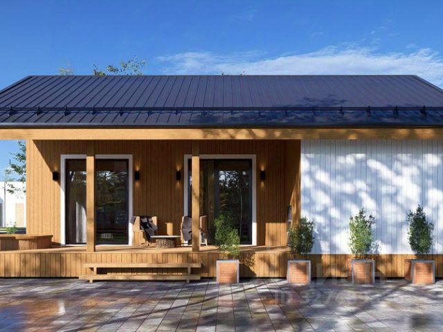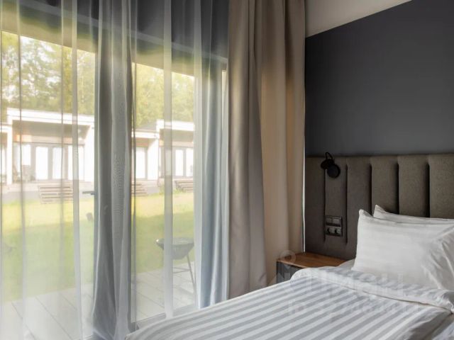 Дом 50 м² / MISTY Superior Простор и диалог с водой в гостевом доме улучшенной планировки MISTY Superior — это улучшенной планировкой для тех, кто ищет не просто уединение, а вдохновляющий простор. Вид на Истринское водохранилище становится главным элементом интерьера, который Вы будете наблюдать из каждой точки — от кухни с барной стойкой до просторной террасы. За мягкое регулирование света и уединение отвечают деревянные жалюзи, которые гармонично дополняют эко-стиль виллы. Усовершенствованная планировка включает: Зона отдыха: комфортабельная кровать King-size с высоким ортопедическим матрацем премиум класса или с двумя раздельными кроватями с возможностью совмещения в King-size. Гостиная: уютная зона с диваном и современной ТВ-панелью и панорамными окнами от пола до потолка открывают живую картину воды и неба. Кухня-гостиная: стильная кухня с барной стойкой, оснащенная всей необходимой техникой и посудой для кулинарных экспериментов и чайной станцией с чаем, кофе, сахаром, а также винным шкафом. Дополнительные преимущества: просторный санузел с окном и вместительная система хранения для ваших вещей. Продуманное зонирование создает ощущение настоящего дома, а не временного жилья. Философия натуральности и эстетики: Как и во всех наших гостевых домах и виллах, здесь использованы только натуральные и экологичные материалы, включая деревянные жалюзи. Интерьер дополнен дизайнерской мебелью, текстилем из чистого хлопка и авторской косметикой. Продуманные сценарии освещения и система умного климата с теплыми полами создают неповторимую атмосферу заботы и релакса. Здесь Вы почувствуете, как легкость пути из города превращается в полноценность жизни у воды, где сервис как предчувствие обеспечивает безупречный комфорт.
